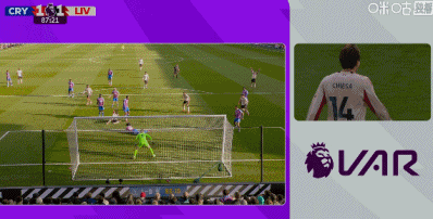 第9分钟,利物浦丢球的角球,经回放看疑似为误判