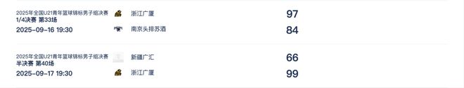 北京时间9月18日晚,2025年全国U21青年篮球锦标赛(下文简称:U21联赛)决赛在安徽省合肥市开打,经过四节鏖战,浙江广厦U21代表队以79—85不敌浙江稠州U21代表队,最终斩获亚军。